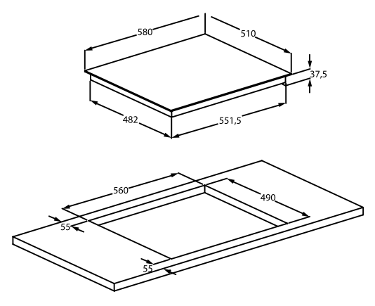 • 60 cm Vitroceramic Hob with 4 Vitroceramic