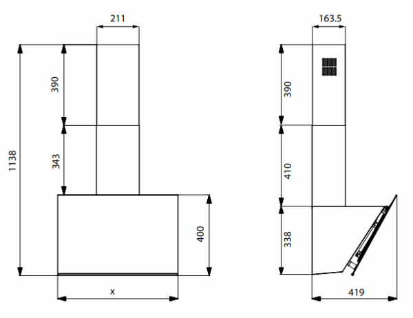 - H x W x D: 113.8 x 59.5 x 41.9 cm