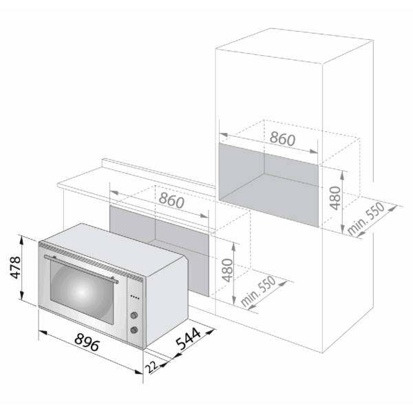- Depth: 550 mm