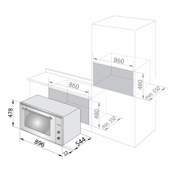 - Depth: 550 mm