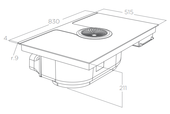 • 1 Cooking zone 210×191 mm – 1,6/1,85 kW