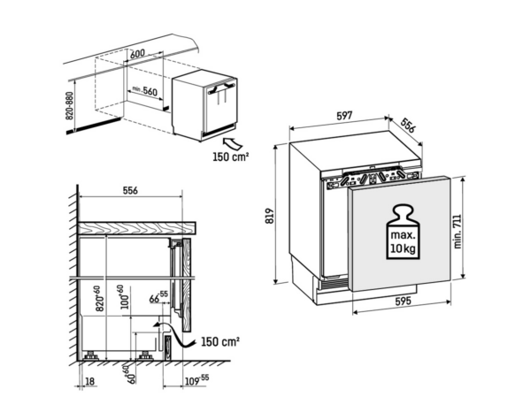 - Energy consumption in 365 days / 24 h: 150 / 0.411 kWh