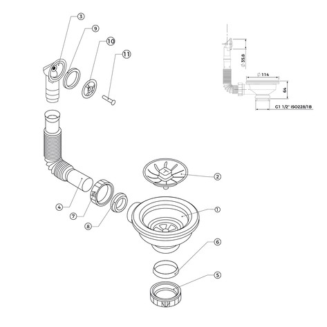 • Valve prevents food debris from passing into the pipes, ensuring less clogging and odours.