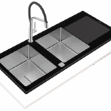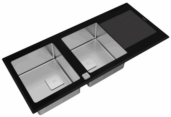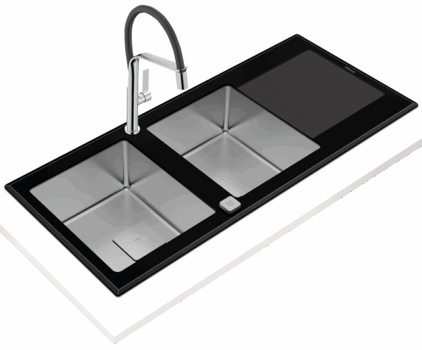 - Stainless steel and glass sink